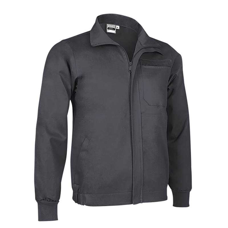 Work Jacket. Made of 100% cotton twill fabric that provides durability, strength, and breathability. Stand-up collar with full-zip front closure for effortless functionality and practicality. Elasticated waistband and cuffs for comfortably fitting. Two slanted waist pockets and a reinforced left chest pocket, all zippered, for a secure and convenient storage, and showcase the branding. Suitable marking methods: screen printing, embroidery, transfer printing, vinyl application. Ideal as workwear and uniforms, pairs well with CHISPA trousers.