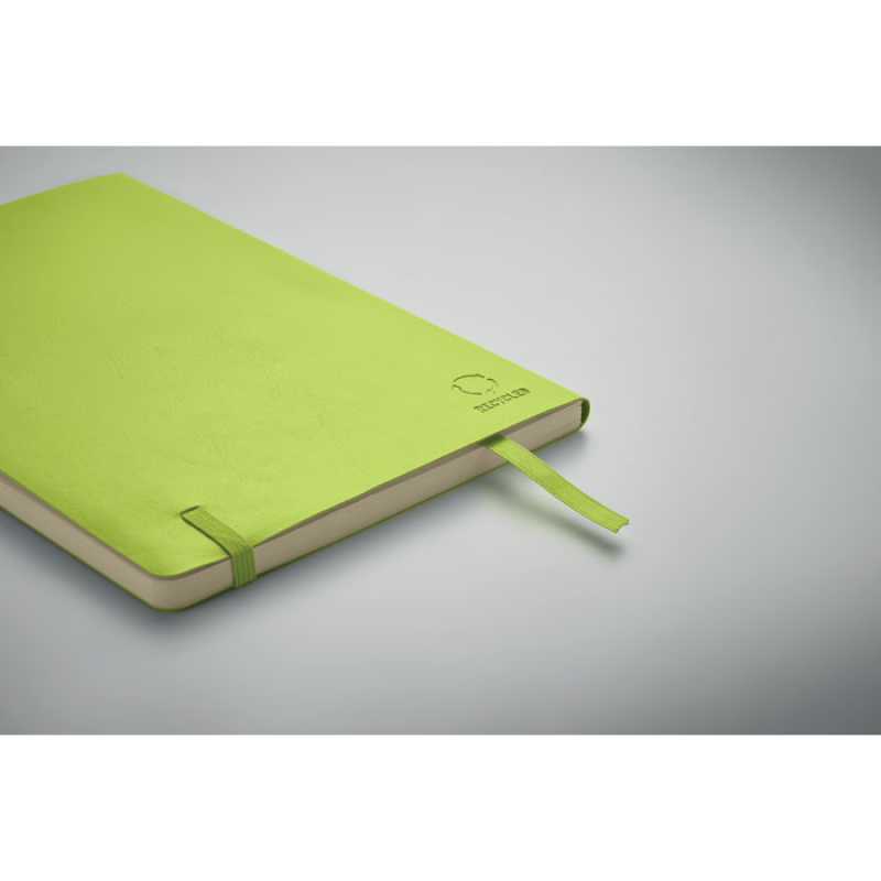 NOVINKA 2025. Zápisník A5 s měkkými deskami z recyklovaného PU (81% recyklovaný polyester a 19% PU). 160 linkovaných stran (80 listů)z recyklovaného papíru. Elastická uzavírací páska a záložka. Vnitřní zadní kapsa.