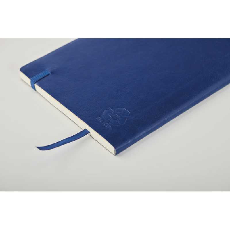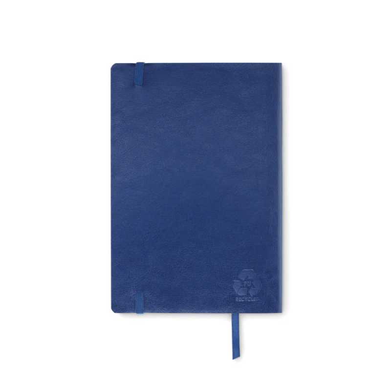 Zápisník A5 s měkkými deskami z recyklovaného PU (81% recyklovaný polyester a 19% PU). 160 linkovaných stran (80 listů)z recyklovaného papíru. Elastická uzavírací páska a záložka. Vnitřní zadní kapsa.