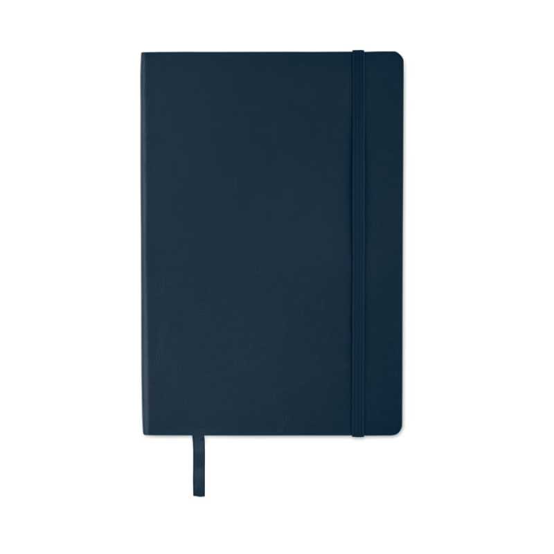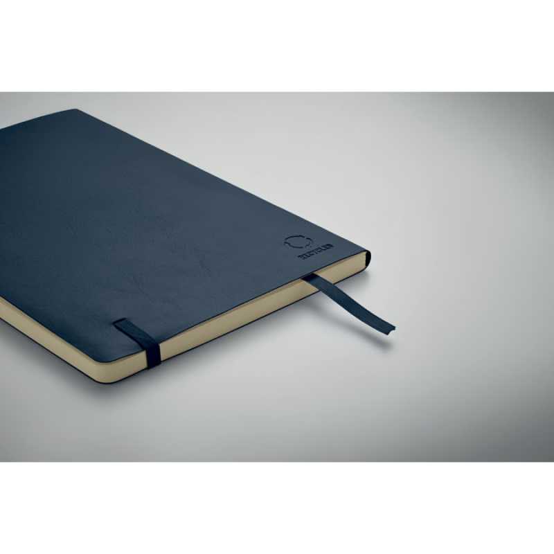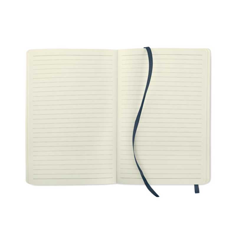 NOVINKA 2025. Zápisník A5 s měkkými deskami z recyklovaného PU (81% recyklovaný polyester a 19% PU). 160 linkovaných stran (80 listů)z recyklovaného papíru. Elastická uzavírací páska a záložka. Vnitřní zadní kapsa.