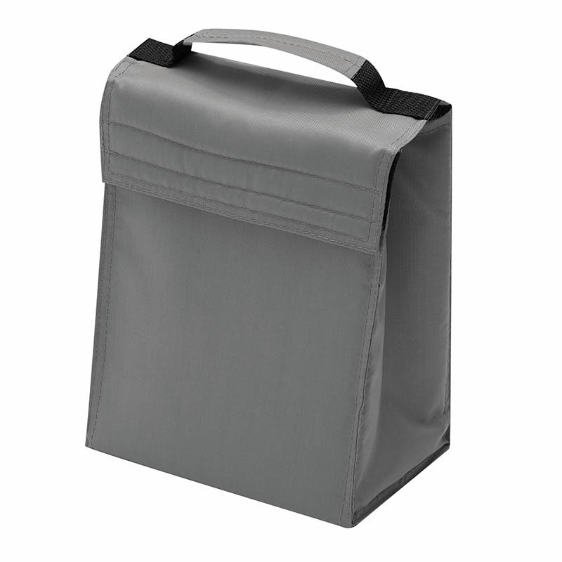 NOVINKA 2025. Cooler bag made of durable RPET 190T. With matching zipper closure and reinforced medium handles of 52 cm in gray. Insulated aluminum finished interior with stitched finish. Strong enough to hold up to 4 kg.RPET material is made from recycled plastic, thus promoting the reuse of plastic waste and helping the planet's sustainability.