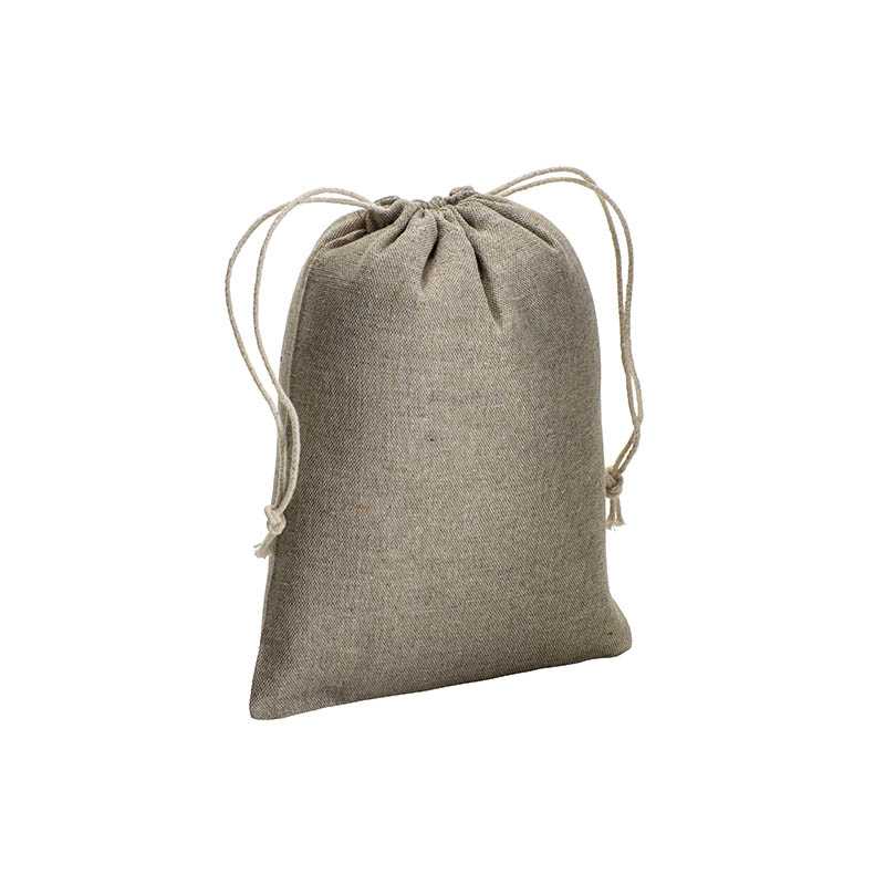 Recycled cotton gift bag 150 g/m2, with choke closure, 15 x 20 cm