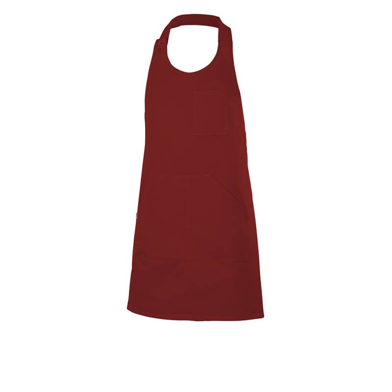 Two ties at ends to fasten garment Buckle to adjust neckband 25 different colours One pocket: 1 front pocket