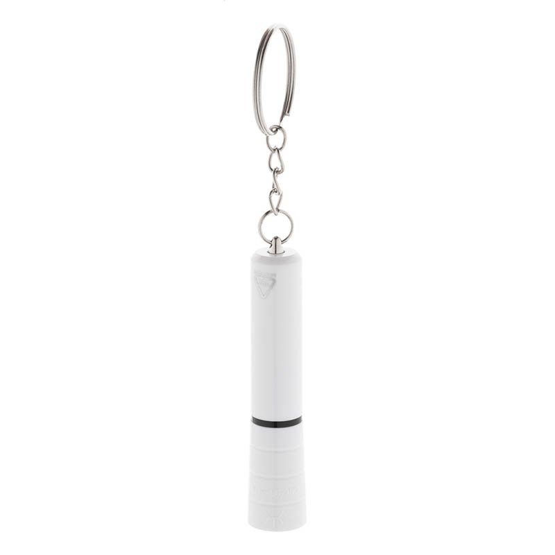 Plastová baterka s 1 LED svetlom a kovovým krúžkom na kľúče. Vygravírované logo na tele baterky svieti. Vrátane gombíkových batérií.