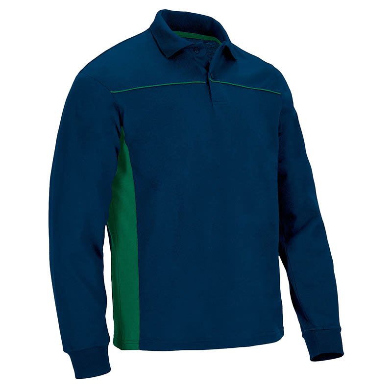 Two-Tone Long Sleeve Polo Shirt. Made of durable and long-lasting cotton-polyester blend pique fabric.Contrasting colour side bands and piping on the chest for a distinctive and original style.Flap and two matching button opening for a more personalised fit. Double stitching on bottom hem and side slits for enhanced mobility and greater comfort.Includes a pocket for sewing and showcasing different suitable marking methods: screen printing, embroidery, transfer printing, badges, shields. Ideal as workwear and uniforms, this Polo Shirt matches all THUNDER line items (sweatshirt, trousers, T-shirt, S/S polo, fleece jacket, softshell jacket and vest).