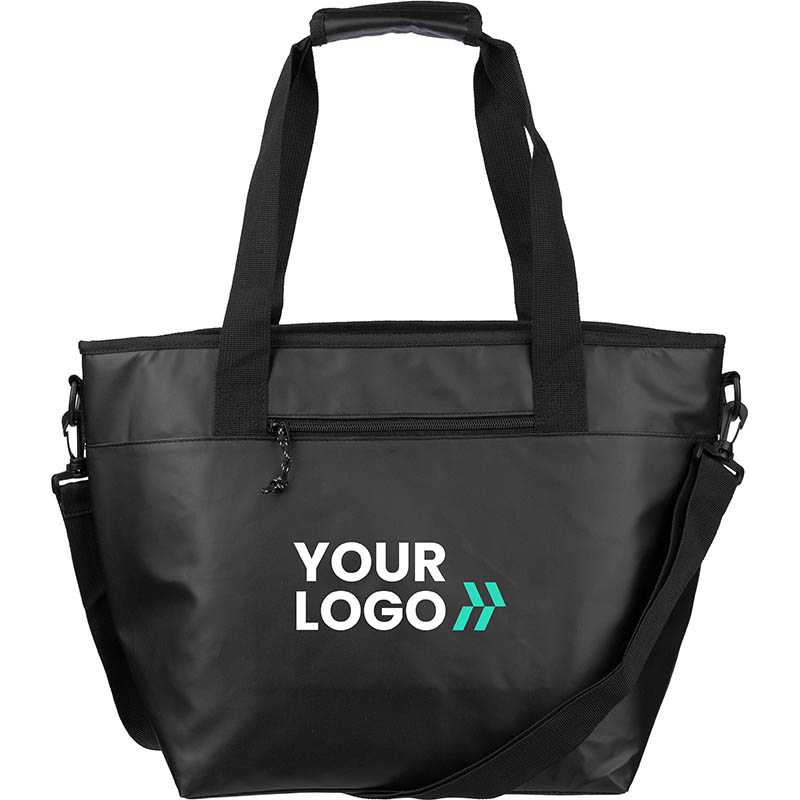 Polycanvas (600D) cooler bag with PEVA interior lining and adjustable straps.
