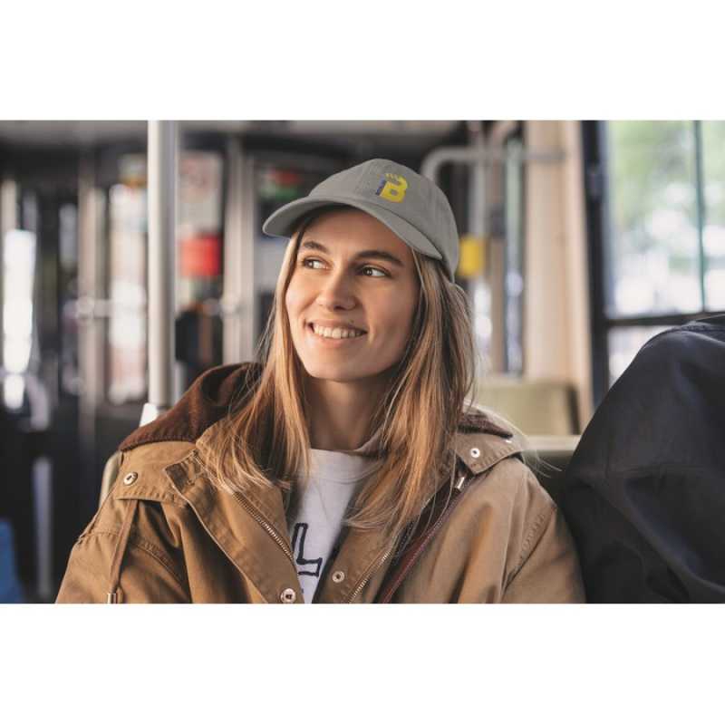 Čiapka z denimu, bavlny (60 %) a polyesteru (40 %) so šiestimi panelmi a otvormi pre prúdenie vzduchu (300 g/m2). Upraviteľná pomocou kovovej spony. Veľkosť: 580 mm