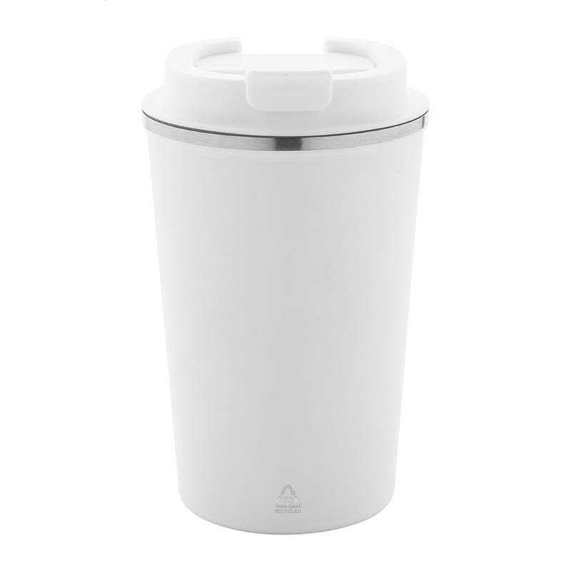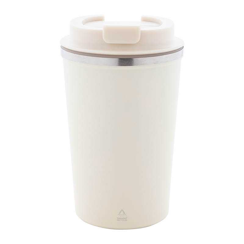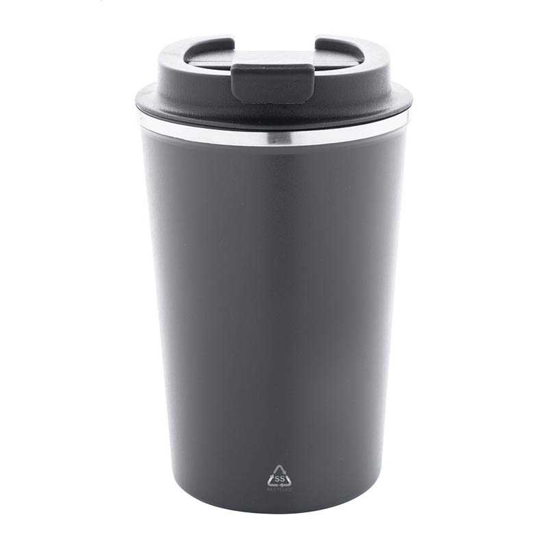 NOVINKA 2025. Dvojstenný termo hrnček z recyklovanej nerezovej ocele s viečkom na pitie z PP. 350 ml.