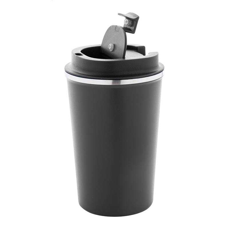 NOVINKA 2025. Tabletop insulated mug made of double-walled stainless steel with a capacity of 350ml matte color. Exterior in resistant PP, with dispenser in lid and easy-opener. BPA free. It is ideal for your desk, table, or any surface where you can enjoy your favorite drink.