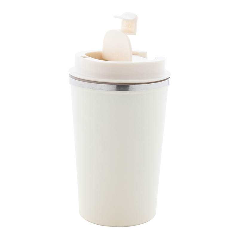 NOVINKA 2025. Tabletop insulated mug made of double-walled stainless steel with a capacity of 350ml matte color. Exterior in resistant PP, with dispenser in lid and easy-opener. BPA free. It is ideal for your desk, table, or any surface where you can enjoy your favorite drink.