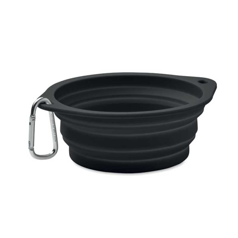 NOVINKA 2025. Foldable bowl for pets made of durable TPE. Compact design, with two compartments of 450 ml, perfect for use anywhere. Includes a practical matching carabiner.
