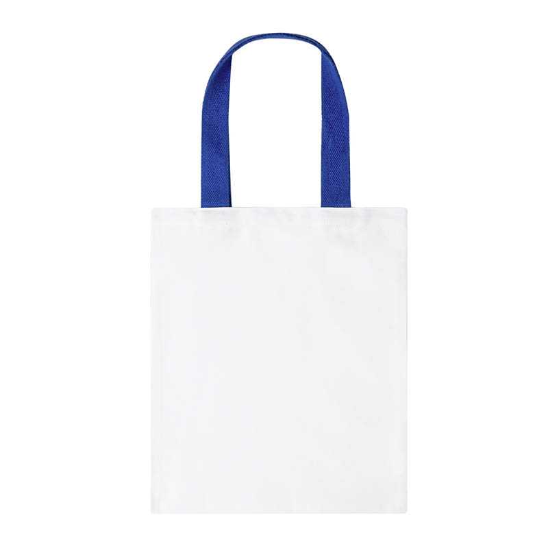 NOVINKA 2025. Canvas bag 230g/m2. In white colour, with resistant stitched finish and reinforced handles in different colours, 60cm long.