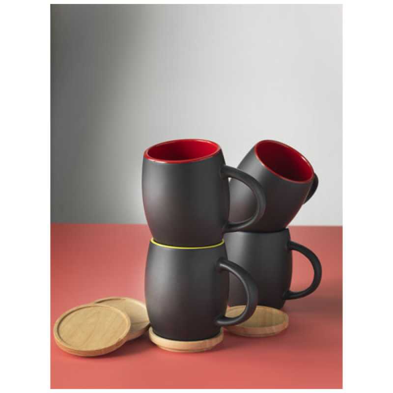 Útulný keramický hrnek Heart o objemu 400 ml s matným povrchem a dřevěným podšálkem je trendy společníkem pro horký nápoj v chladných zimních dnech. Kulatý design vynikne všude, stejně jako barevný akcent na vnitřní straně. Keramický materiál je žáruvzdorný a podšálek lze použít i jako víčko. Hrnek Hearth (včetně potisku) lze mýt v myčce nádobí podle normy EN12875-1 po dobu nejméně 125 mytí.