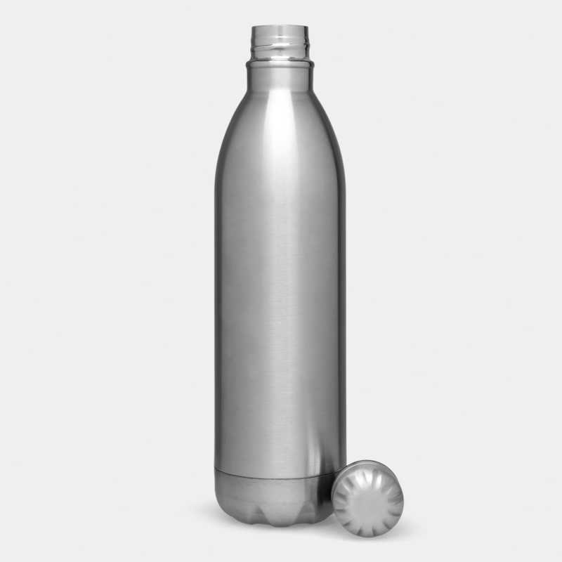 Insulated drinking bottle JUMBO TASTE, double-walled: inside and outside made of stainless steel, secure silver screw cap, capacity approx. 1.000 ml, keeps warm for approx. 8 hours and cold for up to 12 hours