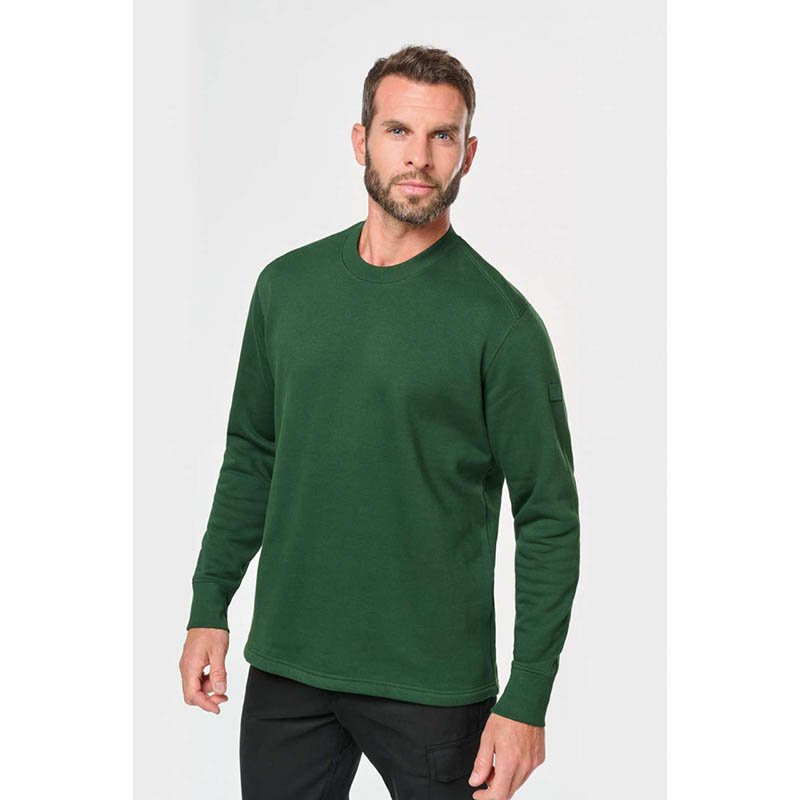 Odolná PRACOVNÍ mikina s kulatým výstřihem.Díky směsi bavlny a polyesteru se dá prát na vyšší teploty (60°C).Vhodná do sušičky.Velmi odolná .Balení: 5/30. (ks v jednom sáčku / celkem ks v kartonu).