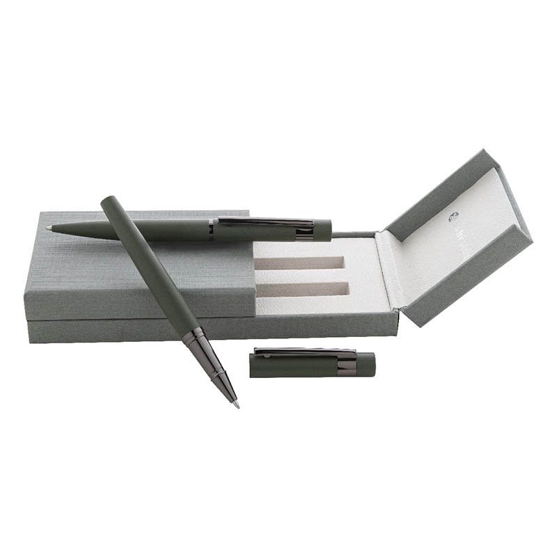 Pen set MANZONI consists of a ballpoint pen and fountain pen (with black refill) packed in an elegant gift box with aluminium plate