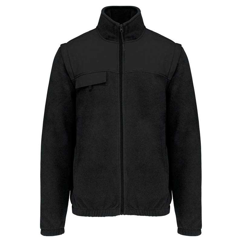 EX KA9105.100 % polyester.Vonkajšia vrstva: 100 % polyester – 400 g/m2.Zosilnené vložky zo 100 % polyesterového taslonu s akrylovou vrstvou.Vnútorná podšívka rukávov z polyesteru 210T.Flísová bunda 2 v 1.2 predné vrecká na zips a 1 náprsné vrecko s klopou a zapínaním na suchý zips.Veľké plecia na ramenách tón v tóne a spodných častiach ramien.Jednoduchý prístup pre zdobenie vpredu a vzadu.Odnímateľné rukávy s polyesterovou podšívkou pre väčšie pohodlie.Elastické manžety a spodný okraj.Certifikát STANDARD 100 podľa OEKO-TEX®N° CQ 1007/8, IFTH.