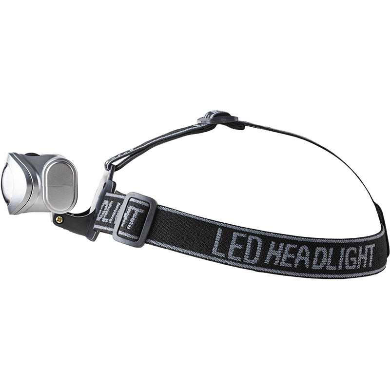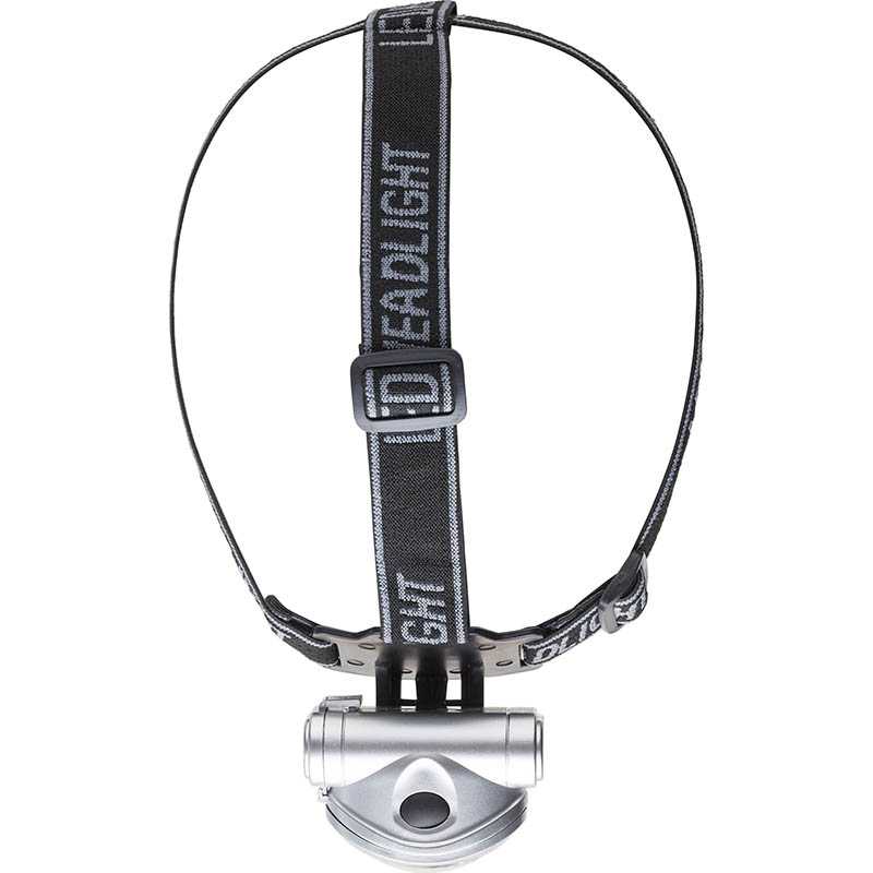 3 LED diódy + 1 žiarovka, s dvoma funkciami svietenia a nastaviteľným popruhom.