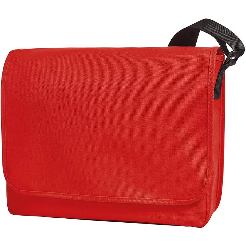 Taška s chlopní s kvalitními kovovými doplňky, zavírání na sponu, velká hlavní kapsa vhodná mj. na dokumenty ve formátu A4, dvě ploché kapsy na přední straně, zadní upevňovací popruh na trolej - alternativně použitelný i jako ucho, široký ramenní popruh z