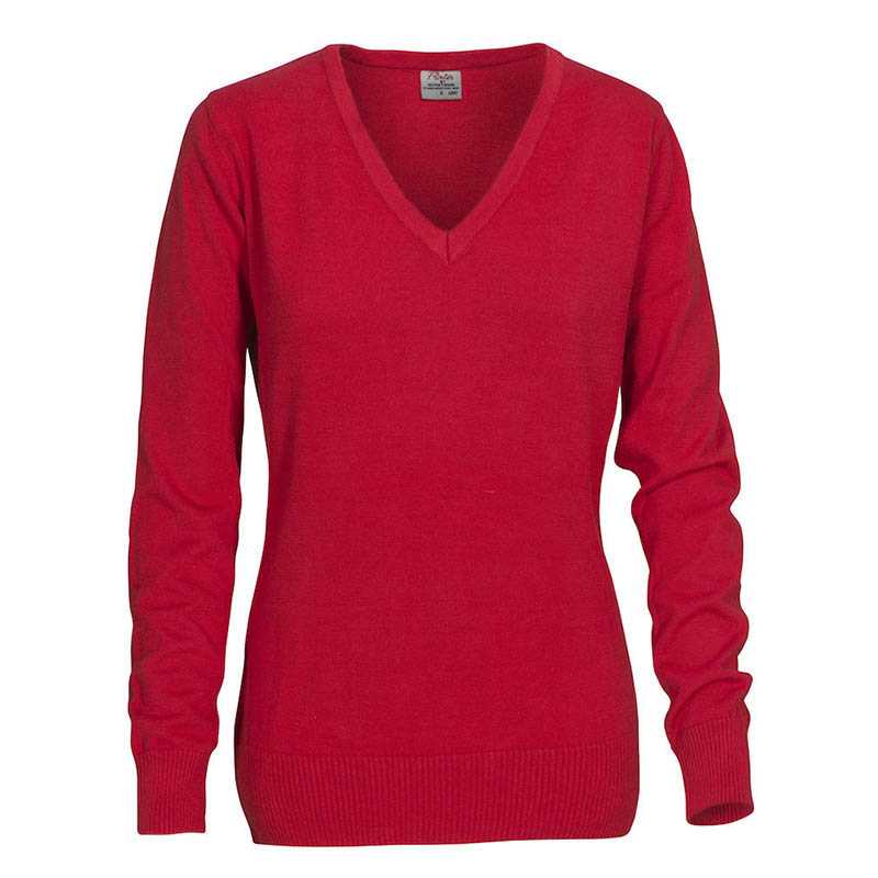 Knitted sweater. V-neck, fully fashion, 1x1 rib at bottom hem and bottom sleeve. · 60% cotton, 40% polyester 12gg · 100 white, 400 red, 600 navy, 632 blue, 728 green, 900 black, 935 grey · S–5XL