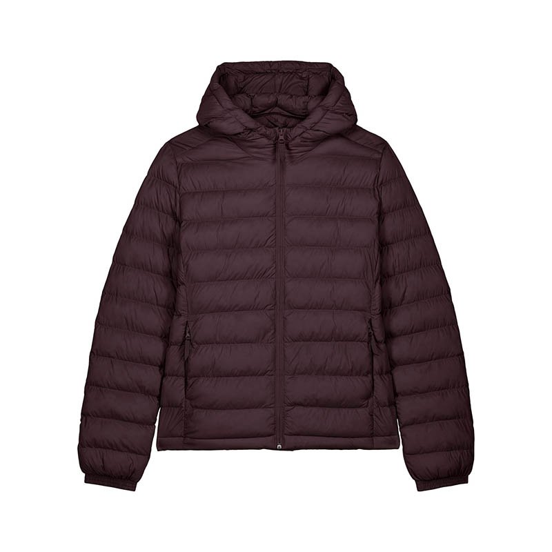 This padded jacket for women offers great heat insulation despite its light weight. With handy "stow-away" function: The jacket folds down into its own inside pocket, saving space on out