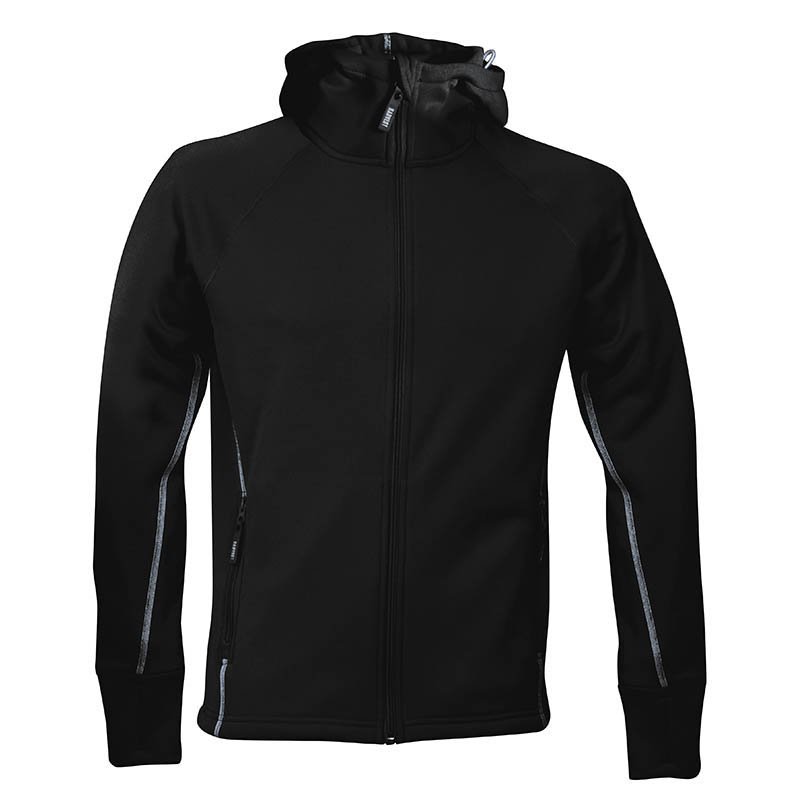 Thick fleece jacket with proven high resistance to pilling. The design is modern and sporty, fitting is modern and comfortable. Hood, contrasting flat lock seams and thumbhole at sleeve end. Elastic drawstring at hood and hem. · S-3XL · 100% POLIESTER : 300 G/M2 · 900 BLACK, 100 WHITE, 600 NAVY, 135 LIGHTER GREY