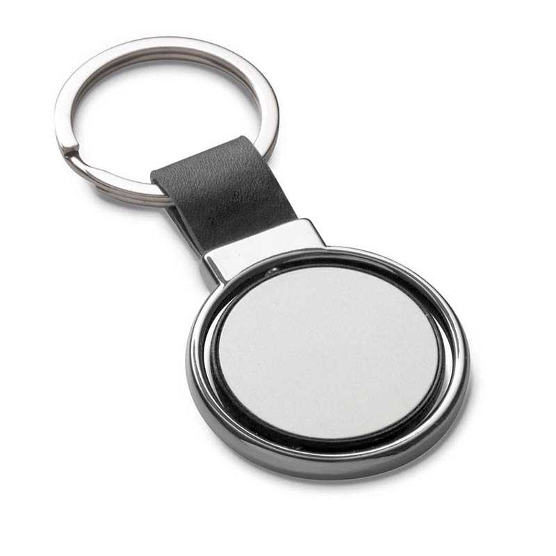 Sturdy keyring with a matte metal keychain and imitation leather tag. Each piece in a box.