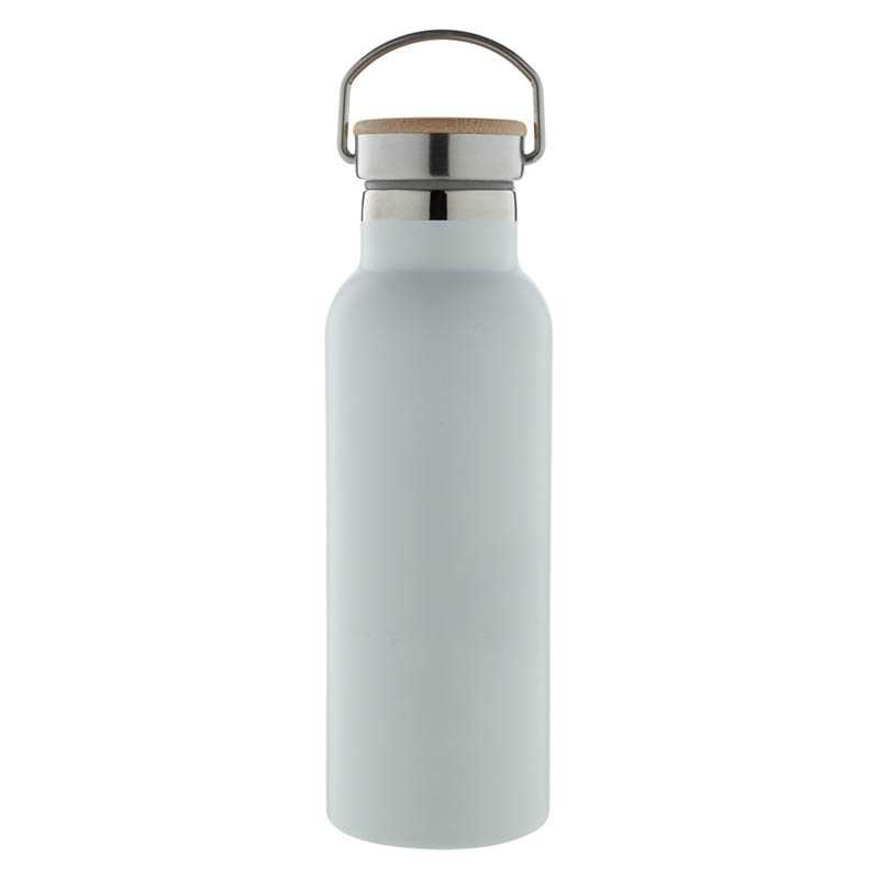Dvoustěnná nerezová termoska s izolačním vakuem. 500 ml, Víčko z bambusu s poutkem. Sublimační tisk je možný pouze na bílý product. Neteče. Bambus je přírodní materiál, může dojít k mírným změnám barvy, dekorace a velikosti.