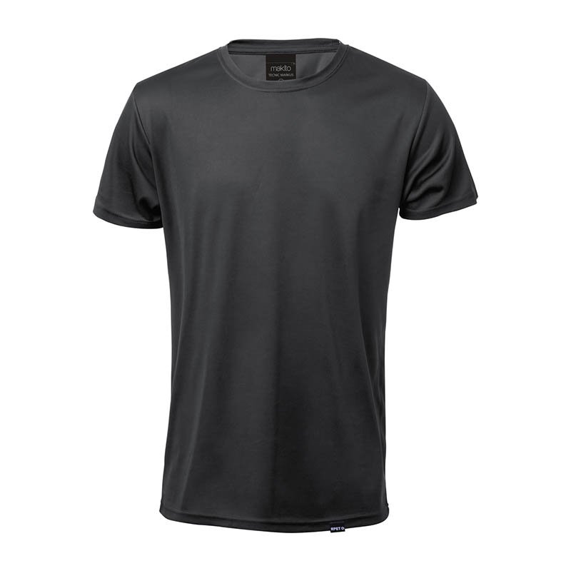 NOVINKA 2025. Unisex technical T-shirt. Made from 100% recycled polyester fabric and melange effect colour. Its 135g/m2 fabric makes it a lightweight garment ideal for sports and everyday wear. Breathable fabric easy to wash and quick drying. Very soft feel and modern cut. Narrow round neck in 2x2 rib. Double stitched hem and sleeves for durability and resistance to intensive wear. With outer RPET label, indicative of a recycled origin product. Easily removable label and available in sizes XS, S, M, L, XL and XXL.