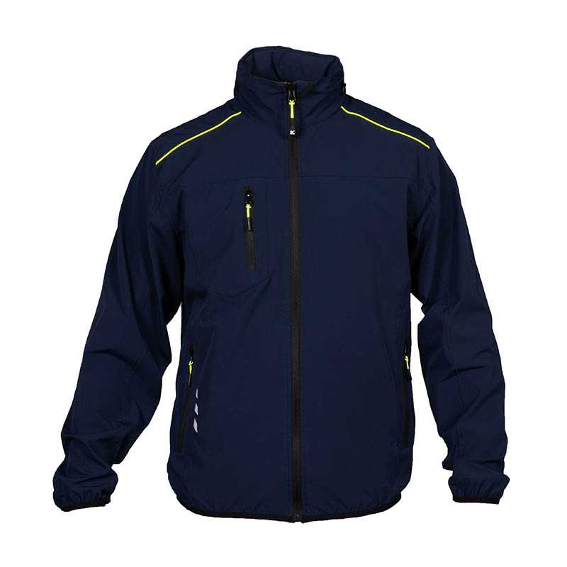 WATERPROOF JACKET IN STRETCH FABRIC HORIZONTALLY AND VERTICALLY FOR MAXIMUM COMFORT - 90% polyester - 10% spandex - Waterproof 8000 mm/H2O - No label - Front and rear reflective prints on the side - Fluo yellow piping on the front shoulders and back - Removable hood with zip - Taped zippers - A chest pocket with zip - Two external pockets with zip - Chin protection fabric with 4STRETCH logo - Elastic fabric at the wrists - Elastic fabric at the bottom