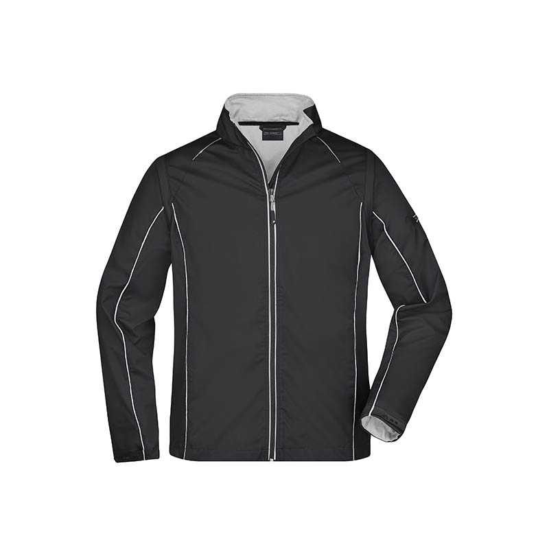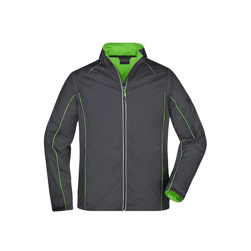 2vrstvový softshell, kombinácia pleteného a hladkého materiálu, celozapínací reverzný špirálový zips, lemy rukávov nastaviteľné suchým zipsom, vrecká s reverzným špirálovým zipsom, vrecko na rukáve, 2 vnútorné vrecká, kontrastné prvky, vnútorný fleece s a