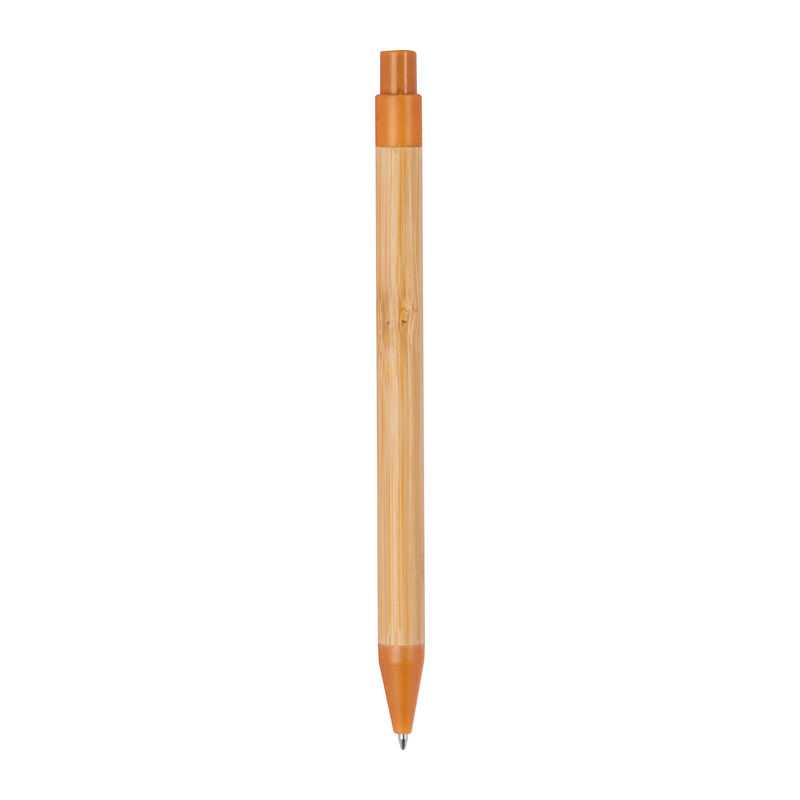 Výsuvné guľôčkové pero z bambusu s farebnými aplikáciami zo pšeničnej slamy a modrou náplňou. Vzhľadom na prírodný materiál sa môžu pri jednotlivých výrobkoch vyskytnúť rozdiely vo farbe a vzore.