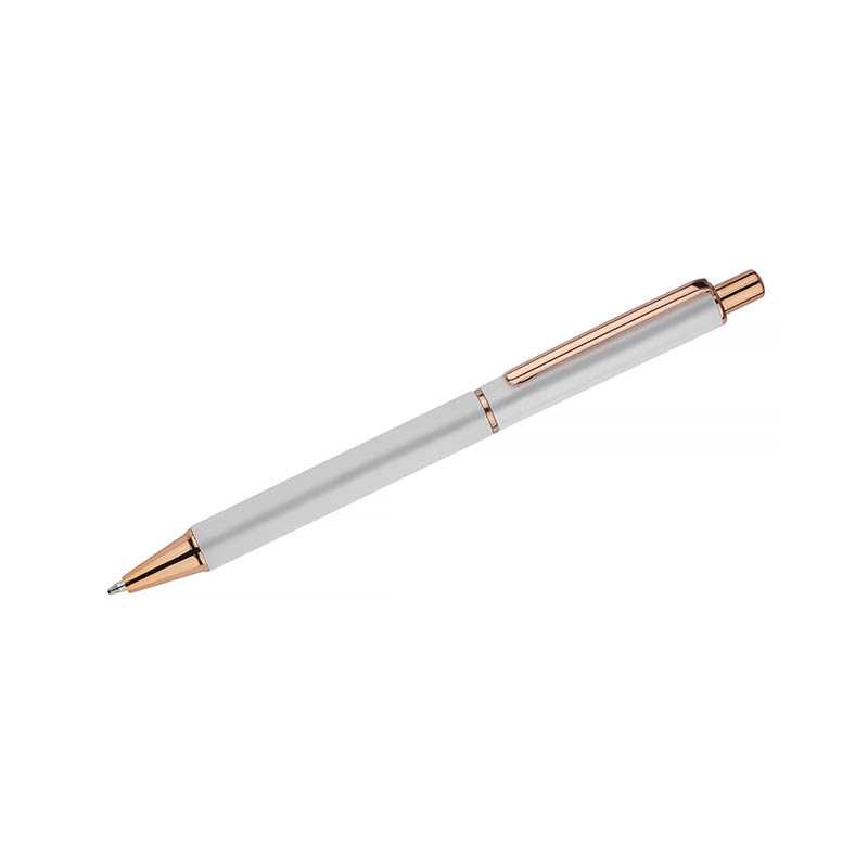 Matová propiska s akcenty v barvě růžového zlata. Těleso a klip jsou vyrobeny z kovu