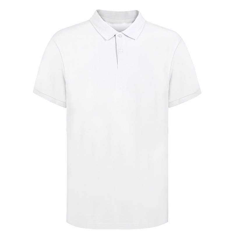 NOVINKA 2025. Adult pique polo shirt in white. In 100% cotton material 220g/m2. With two matching button fastenings and side openings at the hem. Easily removable label. Sizes S, M, L, XL, XXL, 3XL.
