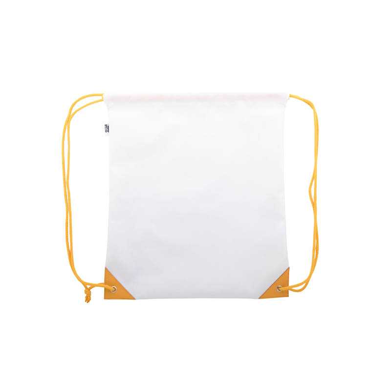Vak na stiahnutie šnúrkou na zákazku z 600D RPET polyesteru, so zosilnenými rohmi z PU kože a hrubými šnúrkami v zodpovedajúcej farbe. S celoplošne tlačenou sublimačnou grafikou a výrazným štítkom RPET, cena nezahŕňa tlačovú prípravu. Min. mn.: 50 ks.