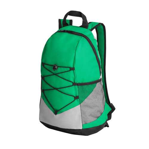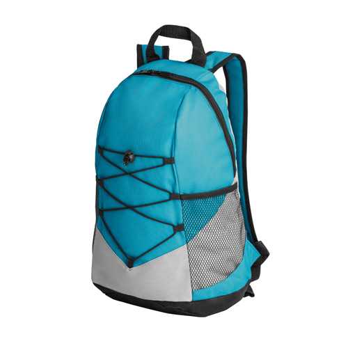 Batoh KAPIRO vyrobený z 600D polyesteru. Má jednu hlavní komoru na zip a dvě boční síťované kapsy. Černé gumičky jsou praktickým prvkem na cesty – toto místo využijete pro zabalení malé deky nebo lehké bundy. Hlavní komora batohu má port pro sluchátka.