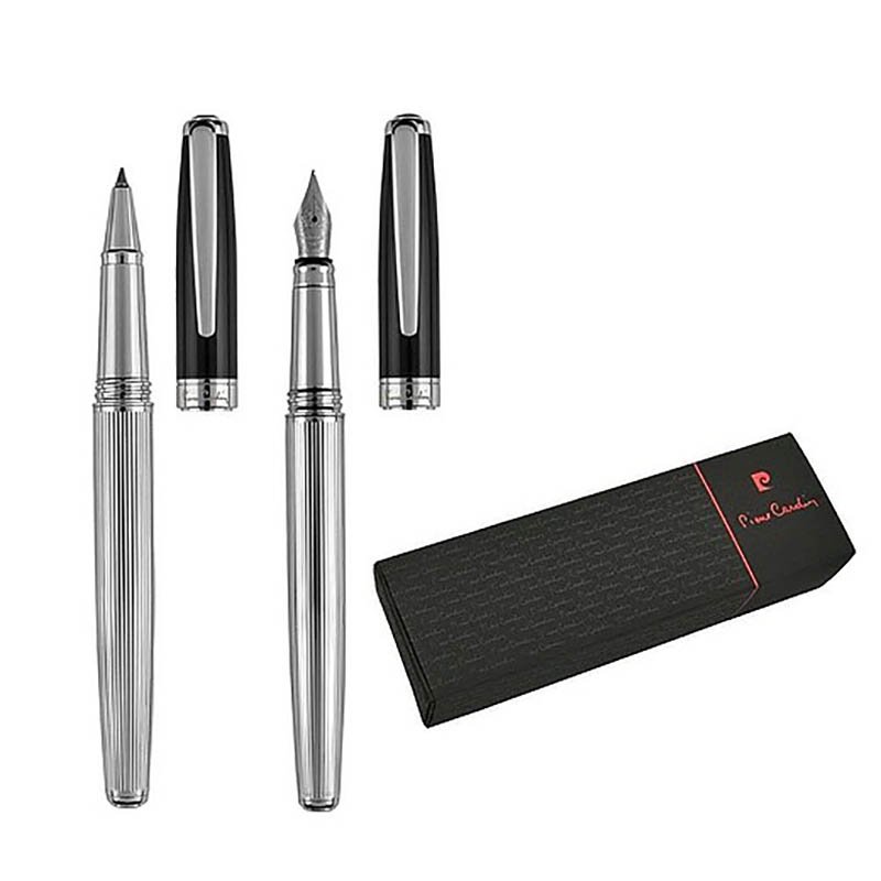 Súprava značkového guľôčkového pera a rolleru Pierre Cardin. Kovové telo písacích potrieb má jemné rytie po celej dĺžke povrchu, hrot rolleru je chránený vrchnákom, guľôčkové pero je navrhnuté s otočným mechanizmom. Roller obsahuje nemeckú náplň Schmidt v modrej farbe s hrotom 0,6 mm, guľôčkové pero kvalitnú modrú náplň s hrotom 1 mm. Roller aj guľôčkové pero majú priloženú náhradnú čiernu náplň. Balené v luxusnej krabičke Pierre Cardin, dodávané s certifkátom pravosti. Odporúčaná technológia potlače: gravír, kartička. Maximálna veľkosť potlače: 25 × 4 mm. Rozmery: guľôčkové pero 1,2 × 14,2 cm; roller 1,2 × 14 cm; balenie 17,5 × 5,5 × 3,5 cm. Kartónové množstvo v ks: 20.