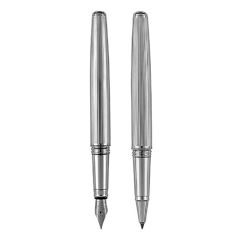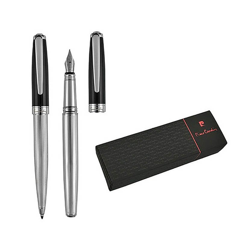 Luxusná súprava rollera a plniaceho pera značky Pierre Cardin v masívnom dizajne v kombinácii striebornej a čiernej farby, s jemným rytím na tele. Hrot je chránený vrchnákom v čiernej farbe. Roller obsahuje značkovú nemeckú náplň Schmidt v modrej farbe s hrotom 0,6 mm a plniace pero 1 ks atramentu v modrej farbe. Roller má priloženú aj náhradnú čiernu náplň. Balené v luxusnej krabičke Pierre Cardin, dodávané s certifkátom pravosti. Odporúčaná technológia potlače: gravír, kartička. Maximálna veľkosť potlače: 40 × 5 mm. Rozmery: plniace pero 1 × 13,7 cm; roller 1 × 13,7 cm; balenie 17,5 × 6,7 × 3,5 cm. Kartónové množstvo v ks: 20.