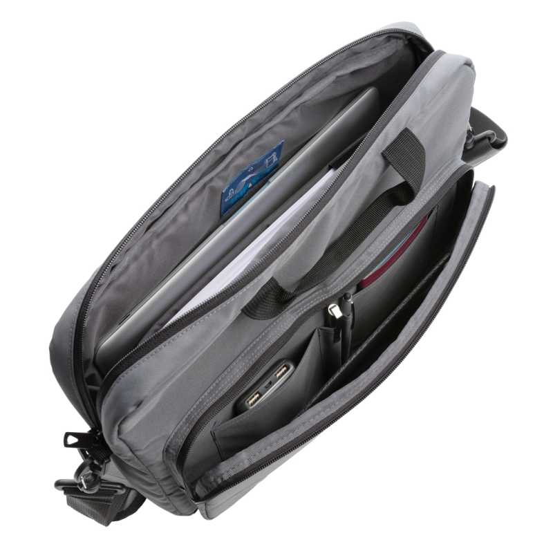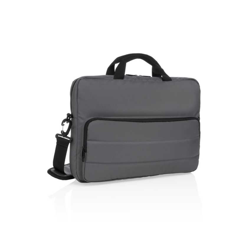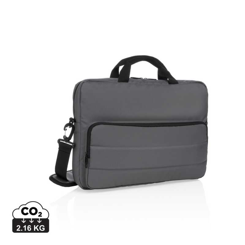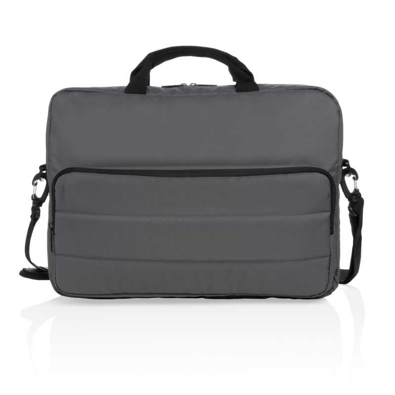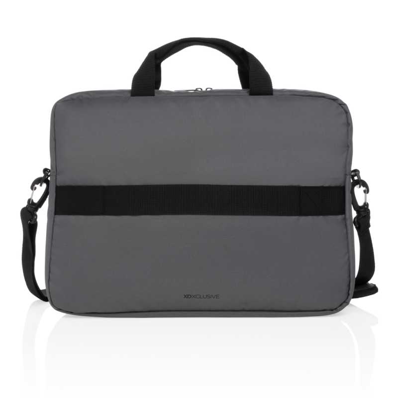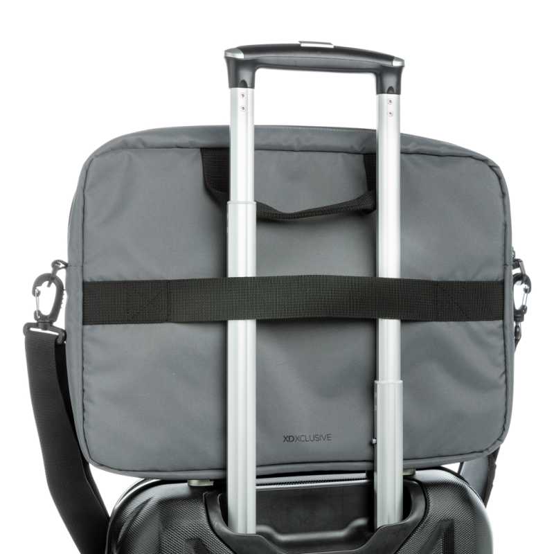 Brašna na 15 palcový notebook z polyesteru 600D RPET. Dvě hlavní vnitřní přihrádky na notebook a tablet. Má malou kapsu na zip. Odnímatelné a nastavitelné ramenní popruhy. Držák na kufr na kolečkách na zadní straně