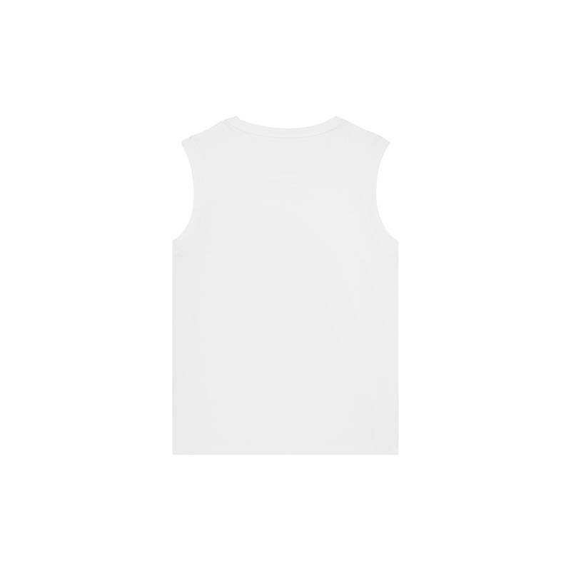 NOVINKA 2025. Sleeveless 1X1 Ribs binding at collar and armhole Overlock at back neck Twin needles topstitches at hem