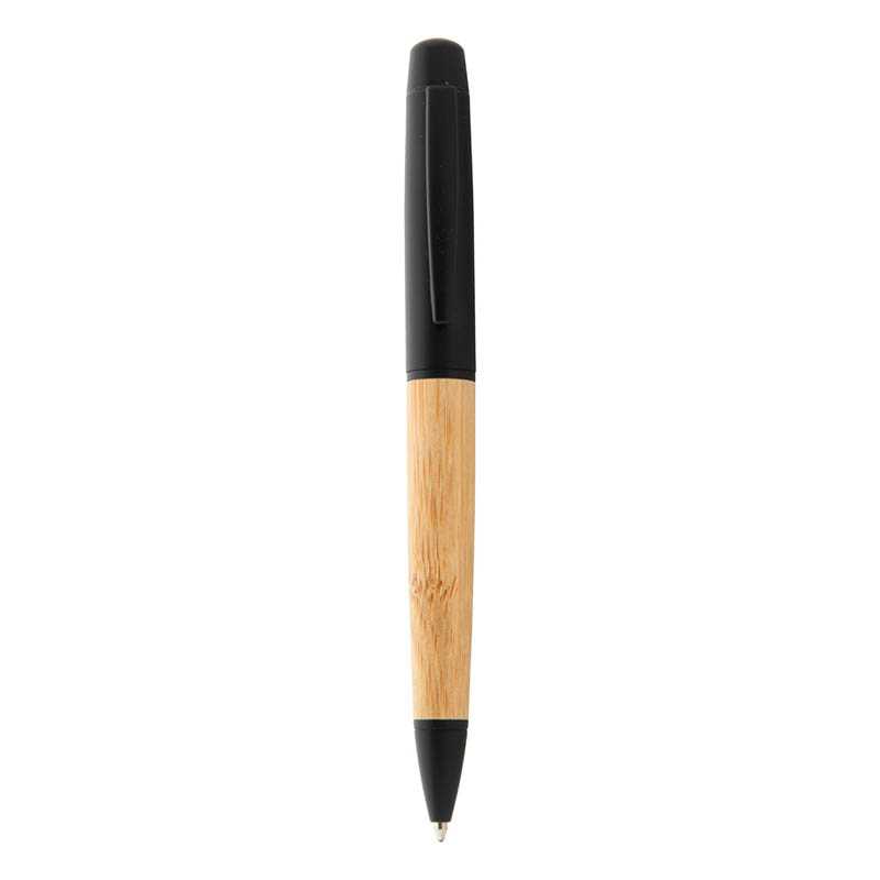 Guľôčkové pero z bambusu a hliníková plastu s kovovou povrchovou úpravou. Obsahuje otočný mechanizmus a kovovú sponu. Čierny atrament. Keďže výrobok je vyrobený z prírodných materiálov, farba a výsledok tlače sa môžu medzi výrobkami líšiť. Guľôčkové pero: O12 x 136mm | Krabička: 23 x 155 mm