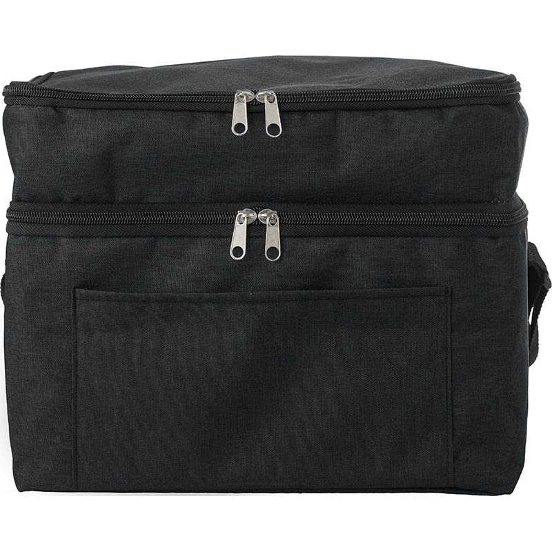 RPET cooler bag with aluminium foil inside. Two zippered compartments. Including carrying strap.