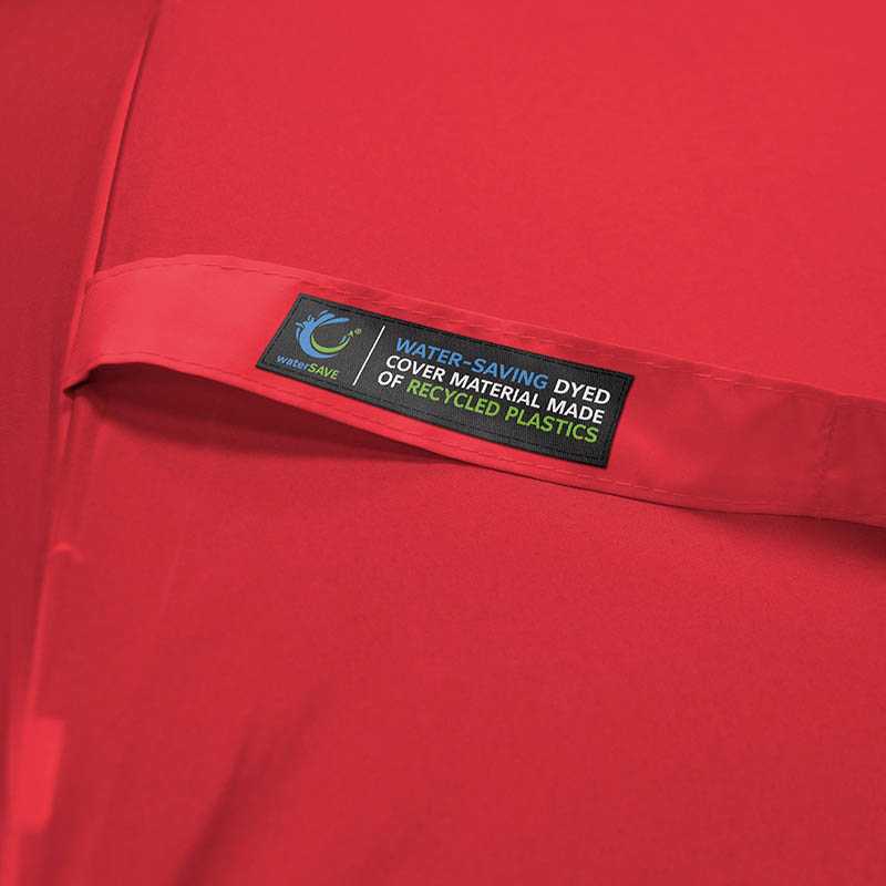 Convenient automatic function for quick opening, high-quality Windproof PLUS system for maximum frame flexibility in stormy conditions, flexible fibreglass ribs, water-saving dyed polyester pongee waterSAVE® cover material made of recycled plastics, with waterSAVE® label on the closing strap, genuine wood tips, straight wooden handle with promotional labelling option, higher corrosion protection due to black galvanised steel shaft