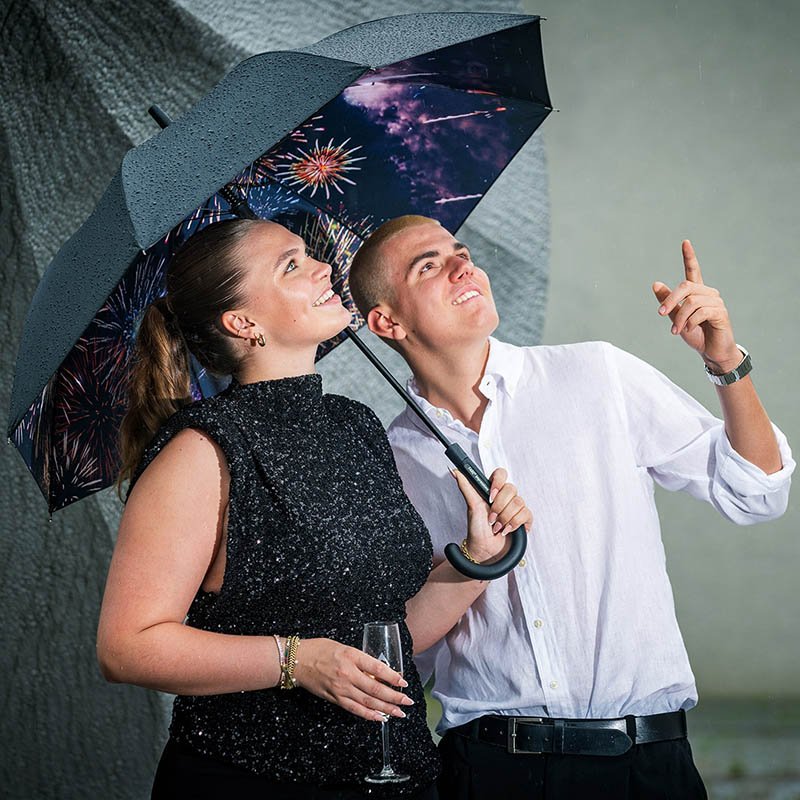Malý a šikovný dáždnik s DAS (Double Automatic System - automatické zatváranie a otváranie). Jeho malá veľkosť vám umožní vziať si dáždnik so sebou kamkoľvek, takže je ideálny na každodenné použitie. Vyrobené zo 180T polyesteru, vďaka čomu je výrobok ľahký a zároveň spoľahlivý. Plastová rukoväť pokrytá pogumovanou úpravou poskytuje nielen pohodlie, ale aj pevné uchopenie v ruke. Dáždnik je komplexne odolný voči vetru. Ochranné púzdro v sade. Priemer: ? 99 cm