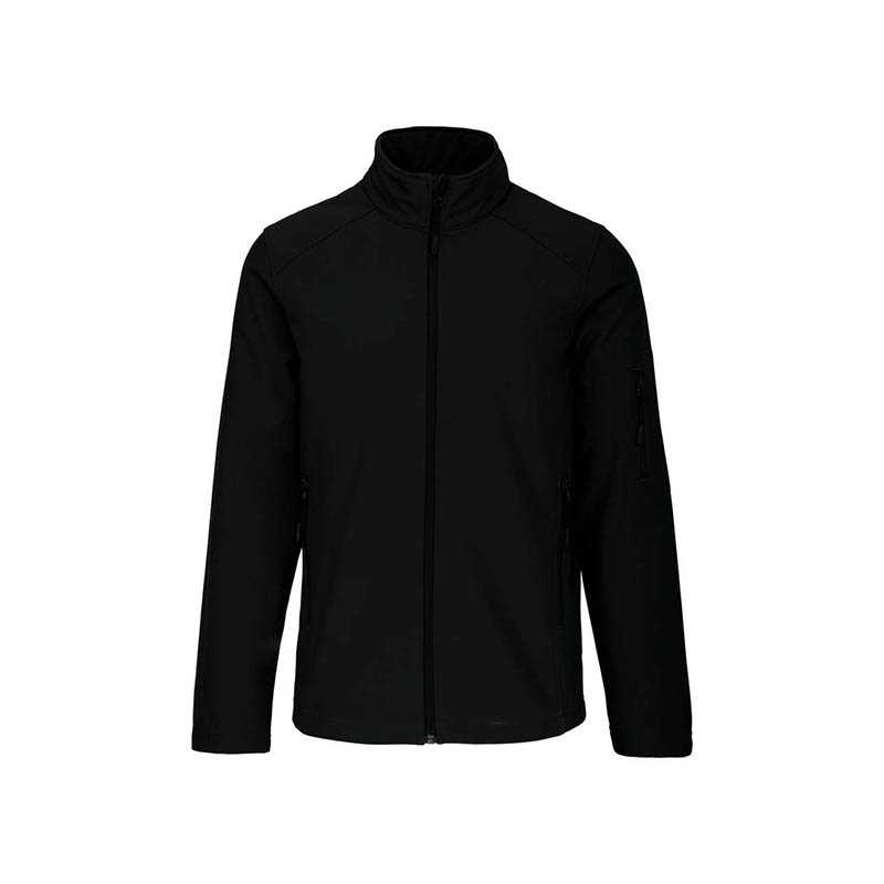 95 % polyester/5 % elastan.Softshellová trojvrstvová lepená tkanina.3 000 g/m2/24 h priedušnosť a 8 000 mm vodoodolnosť.Priedušná stredná vrstva a vnútorná termovrstva z mikroflísu.Vpredu na zips.2 bočné vrecká na zips.1 vrecko na ľavom rukáve na zips.