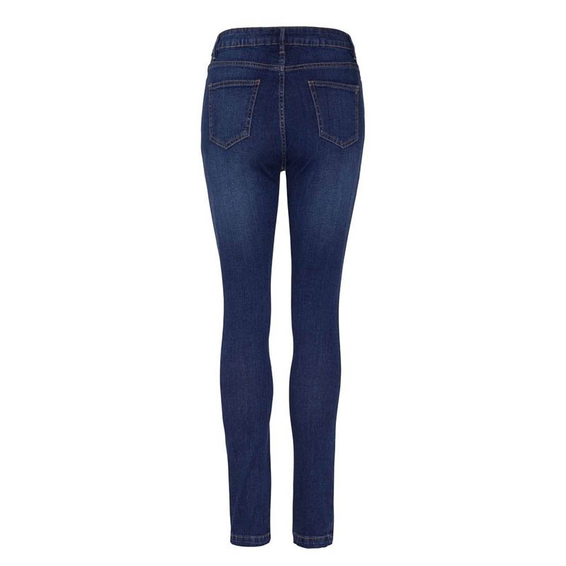 98 % bavlna/2 % elastan.Priliehavý strih.Strečový denim.Štýl s 5 vreckami.Zapínanie na narážací gombík a zips YKK.Kovové nity v rohoch vreciek.Detail prešívania dvojitým prešívaním.Látkové pútka na opasok.