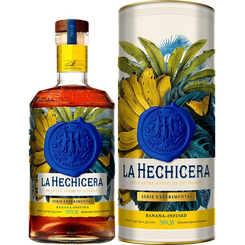 La Hechicera Rum Serie Experimental No.2 - Banana Infused je špeciálna edícia klasického rumu La Hechicera. Zrel v sudoch z bieleho duba, kde bol infuzovaný výdatným množstvom organickej banánovej dužiny. Táto experimentálna séria rumu je oslavnou ódou pre tri generácie rodiny Riascovcov (výrobcov tohto rumu), ktorí sa pôvodne živili pestovaním banánov, kým započali romantický rodinný príbeh s výrobou rumu La Hechicera (prečítať ste si o tom mohli napríklad tu). So zámerom stvoriť dokonalú a vyváženú chuť ponoril majster Giraldo Mituoka banány sušené na slnku do vyzretého rumu, čím naplno využil intenzívnu chuť ovocia a zároveň zachoval dokonalosť destilátu. La Hechicera Serie Experimental No.2 Banana Infused je výrazne experimentálny a až umelecky prevedený rum. Upozornenie: Rum obsahuje prirodzenú usadeninu. Ron La Hechicera Experimental Series No. 2 je výrobok, ktorého zloženie vzniklo maceráciou dehydrovaného organického banánu. Je dôležité spomenúť, že banán je ovocie bohaté na vitamíny a minerály, ktoré sa v špeciálnom zložení tejto série môžu stať rozpustnými a objaviť sa vo forme zrazenín, čo je uvedené aj na etikete.