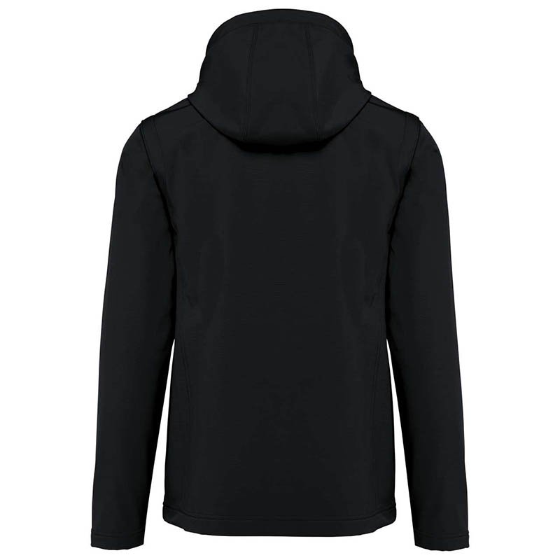 "Soft shell jacket waterproof and breathable - 92% Polyester - 8% elastan - Waterproof 6000 mm/H2O - Resistance to moisture g/m2/24h 4000 - Detachable sleeves - Pull-out hood - Reflective thin band on the sides - Covered zippers - One chest pocket with zip"