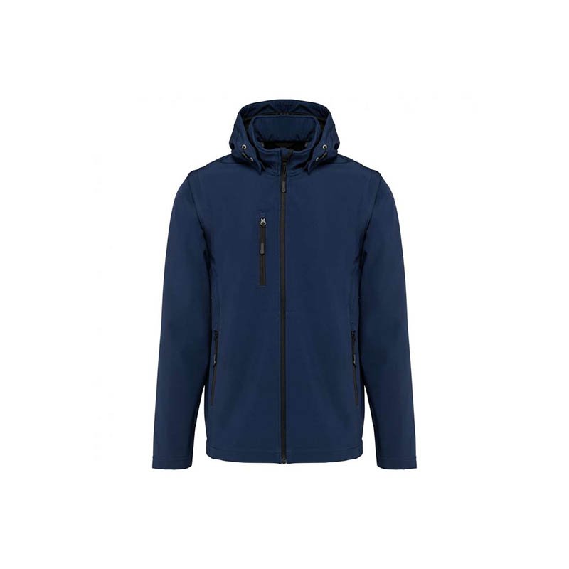 "Soft shell jacket waterproof and breathable - 92% polyester - 8% elastan - Waterproof mm/H2O 6000 - Resistance to moisture g/m2/24h 4000 - Detachable sleeves - Detachable hood with zip - Covered zippers - One chest pocket with zip - Two outside pockets wi"