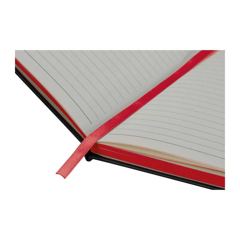 Linajkový zápisník veľkosti A5 so 160 stranami, záložkou a slučkou na pero.